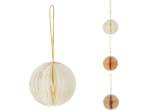 Papírové ozdoby o průměru 80 mm s vánočními motivy v různých barevných variantách, doplněné zlatým glitrem. Jednotlivé kusy jsou dodávány v mixu barev a motivů, které se mohou mírně lišit.