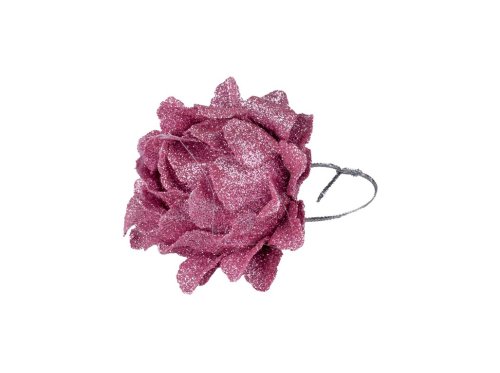 Ozdoby textil 6ks 40mm Vánoční na stromeček květ, růžová s glitrem