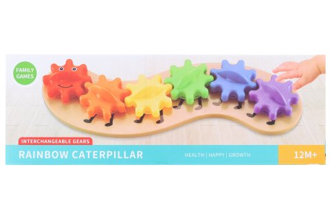 Plastová housenka z ozubených kol! Duhová housenka je skvělou vzdělávací a chytrou hračkou, protože učí děti chápat zásady mechaniky. S touto barevnou převodovkou okouzlíte i ty nejmenší děti, které budou fascinovány barvami a pohybem této skvělé hračky. Rozměr balení cca 35 x 12 x 4,5 cm. Věk 1+