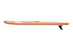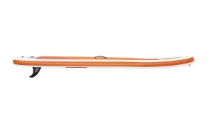 Paddle Board Aqua Journey Set má optimální tvar pro jízdu na klidné vodě a malých vlnách. Materiál se zapuštěnými švy. Přenosný, skladný a vyznačuje se pevností srovnatelnou s pevnými prkny. Protiskluzová úprava vrchní plochy. Praktická rukojeť na horní straně pro přenášení prkna. Jednokomorový. Nastavitelné pádlo 2,17 m. Počet osob: 1 dospělá osoba. Nosnost: 100 kg. Rozměr: 2,74 m × 76 cm × 12 cm. Obsahuje: 1 paddle board, 1 pádlo, 1 ruční pumpa, 1 batoh, 1 elastické lanko, 1 středová ploutev, sada pro opravy.