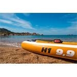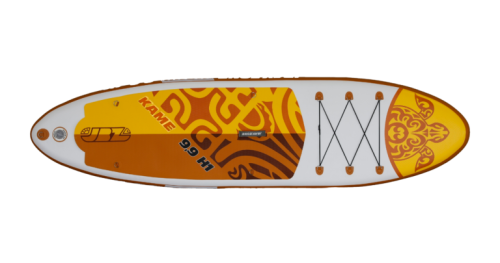 Paddleboard tvoří paluba o šířce 76 cm a délce 297 cm. Díky ní snáze udržíte rovnováhu na hladině a zároveň dosáhnete potřebné rychlosti. Ještě větší stabilitu vám zajišťuje odnímatelná centrální ploutev. Paddleboard si připnete k noze pomocí poutka. Zabráníte tomu, aby vám uplaval.