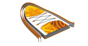 Paddleboard tvoří horní a dolní vrstva laminovaného PVC materiálu. Uprostřed prkna, mezi oběma deskami, se nachází jádro Drop-Stitch. Skládá se z polyesterových vláken a vzduchových komor, které zaručují jeho tuhost po nafouknutí. Konce vláken jsou přivařené k vrstvám vysoce pevného PVC laminátu. Paddleboard je tak opravdu lehký, pevný a odolný.