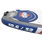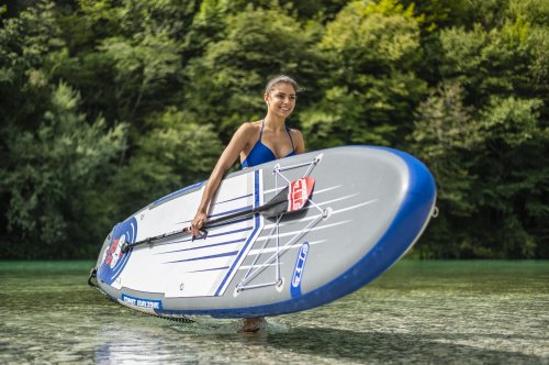 Paddleboard tvoří široká paluba – 81 cm. Díky ní snáze udržíte rovnováhu na hladině. Je ideální pro začátečníky a unese až 145 kg. Tento lehký paddleboard o délce 320 cm snadno ovládáte. Připnete si ho pomocí poutka k noze. Zabráníte tomu, aby vám uplaval.