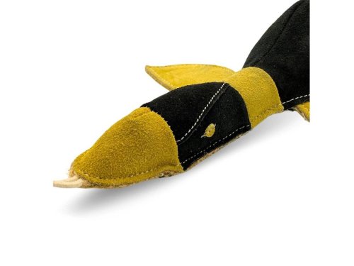 Kůže použita na hračkách je barvena zdravotně nezávadnými barvami, které mohou při kontaktu se slinami nebo vodou mírně pouštět. Nemusíte se však bát, pejskovi to nějak neuškodí.