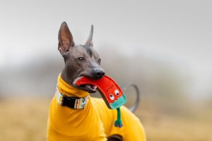 Hračka je vyrobená z přírodních materiálů, bez chemických látek, které by mohly být škodlivé při žvýkání. Kůže je barvena zdravotně nezávadnými barvami. Při kontaktu se slinami nebo vodou může barva mírně pouštět, ale to pejskovi nijak neuškodí. Hračka je vyplněná přírodními kokosovými vlákny, díky čemuž je na pohmat tvrdá. Ideální pro hru i žvýkání. Hračka nevydává žádné zvuky.