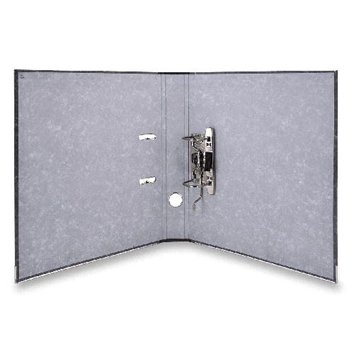 Kartonový pákový pořadač s mramorovým potahem. Pořadače jsou vyrobené z ekologicky šetrné lepenky, potažené mramorovým papírem po vnitřní i vnější straně. Hřbet pořadačů je potažen papírem s vysokou pevností a tažností. Hřbet 50 mm, formát A4, kapacita 350 listů, Rado zámek, hřbetní úchyt a kapsa na štítek.