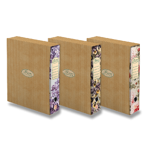 Pákový pořadač A4 v pevné kartonové designové krabici, která zvyšuje stabilitu šanonu.
