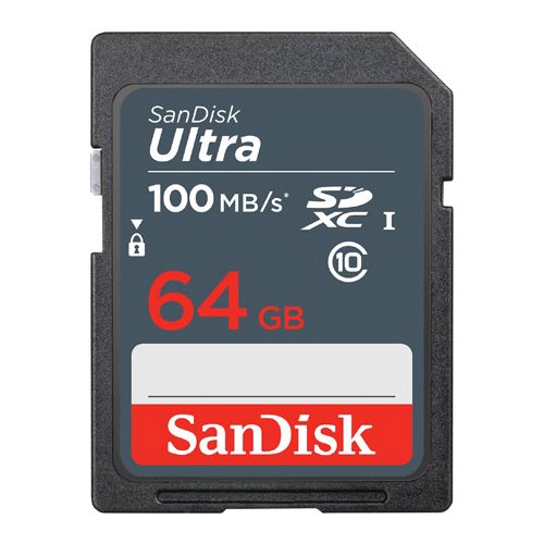 Paměťová karta Sandisk Ultra SDXC s kapacitou 64 GB je vhodná pro videokamery a fotoaparáty. Karta umožňuje pořizovat fotografie ve vysokém rozlišení a videa v rozlišení Full HD.