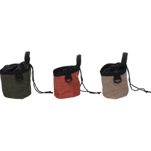 Kapsa na pamlsky je vyrobená z polyesterové tkaniny a uzavíratelná stahovací šňůrkou. Má klip k připevnění například ke kapse a kroužek na připnutí doplňků. Díky vodoodpudivému materiálu je ideální na procházky i trénink v terénu se psem. Pamlskovník lze prát v ruce na 30 °C. Rozměry (cca): A = 12 cm, B = 12 cm, C = 13 cm (viz obrázek) Materiál: polyester Barva: zelená (khaki), oranžová, béžová – zasíláme dle aktuální skladové zásoby. Přejete-li si konkrétní barvu, napište ji do poznámky k objednávce. Údržba: pouze ruční praní do 30 °C.