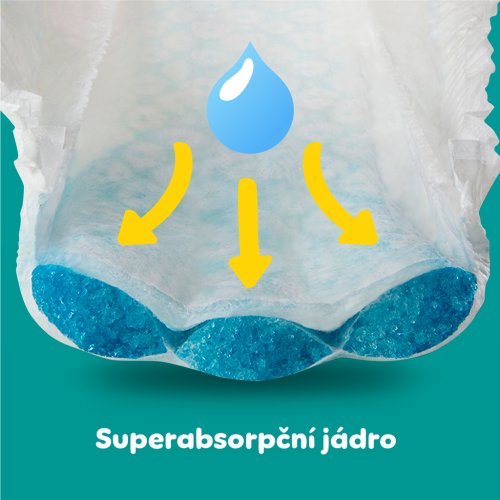 Věděli jste, že se vaše děťátko při spánku pohybuje až dvakrát více než dospělí lidé? Jeho noc je plná aktivit. To může vést k protečení plenky, nebo k tomu, že jeho klidný spánek bude rušit mokrá objemná plenka. Proto mají plenky Pampers jedinečnou další absorpční vrstvu „sleep“, která pomáhá rychle absorbovat tekutinu. Bez ohledu na to, jak se děťátka pohybují nebo v jaké poloze spí, tak budou díky plenkám Pampers v suchu po celou noc.