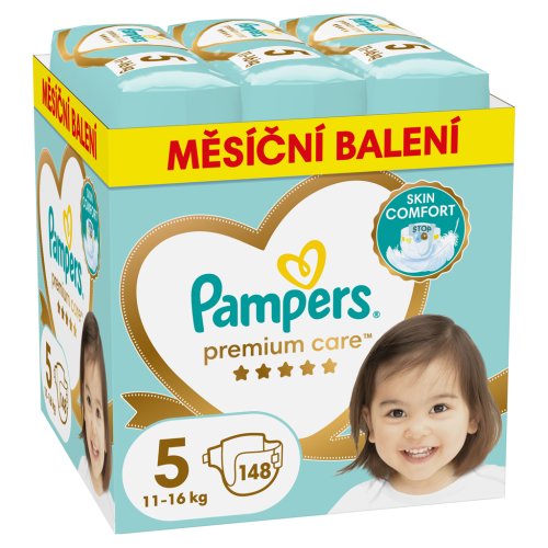 Velikost 5 148 kusů 11 - 16kg Nejlepší pohodlí a ochrana pro citlivou pokožku děťátka od Pampers Dlouhodobý kontakt citlivé pokožky vašeho děťátka s močí a nečistotami může mít negativní dopad na její stav Vaše děťátko se pak kvůli tomu může cítit nepohodlně a být neklidné