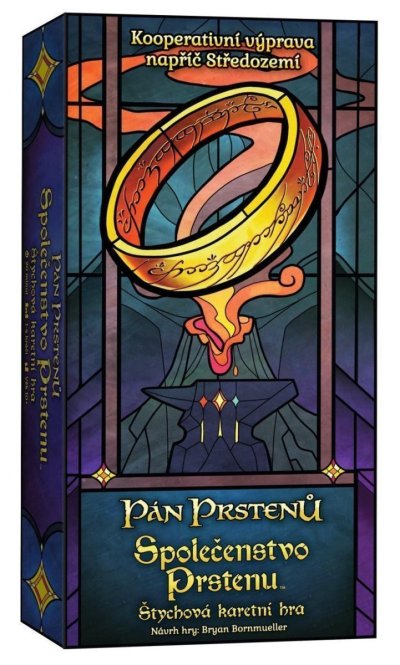 Štychová karetní hra ze světa Pána prstenů. Vstupte do legendárního světa Středozemě ve štychové karetní hře! Společně v této kooperativní hře postupujte příběhem, poznávejte nové postavy a plňte speciální úkoly na výpravě první knihou milované série Pán prstenů. S rozmyslem zahrajte své karty, zatímco se váš tým bude vyhýbat nebezpečí a procházet vzrušujícími kapitolami od opuštění Kraje k osudovému rozpadu Společenstva. Díky několika herním módům a desítkám známých hratelných postav jako Gandalf, Tom Bombadil a Galadriel nebudou žádná dvě dobrodružství stejná, a tak se přidejte ke Společenstvu a vydejte se na výpravu napříč Středozemí! Společenstvo Prstenu - štychová hra je kooperativní hra pro 1 až 4 hráče o 18 kapitolách založených na první části klasické trilogie J. R. R. Tolkiena. Co je štychová hra? Pravidla této hry vychází z pravidel mnoha klasických her (mariáš, bridž, euchre, Doppelkopf nebo tarot). Štych se vytvoří tak, že každý hráč zahraje doprostřed stolu kartu ze své ruky. Jeden z hráčů pak štych vyhraje a karty si vezme. Co je kooperativní hra? V kooperativní hře musí hráči spolupracovat, aby splnili úkol každého hráče, a vyhrávají nebo prohrávají jako tým. Co je kapitola? Kapitoly jsou scénáře, které dohromady tvoří příběh Společenstva Prstenu. Určují postavy, za které hráči musí hrát, speciální pravidla, kterými se musí řídit, a úkoly, které je třeba splnit k dalšímu postupu. Mohou být odehrány na přeskáčku, ale doporučujeme je hrát ve vzestupném pořadí. Hráči mají v ruce karty, které představují svět Středozemě, a jak je ovlivněn Jedním prstenem. Když budou hráči spolupracovat a chytře je zahrají, splní tak úkoly jednotlivých postav a vyhrají hru. Jednotlivá rozdání karet se nazývají kola, která se hrají jako série štychů. Hráči mohou během přípravy a hry probírat pouze informace, které jsou viditelné pro všechny. Nemohou probírat nebo ukazovat karty, které mají v ruce nebo jsou v ruce jiného hráče. Počet hráčů: 1-4 Věk: 10+ Obsah balení: 144 karet 5 žetonů 1 pravidla