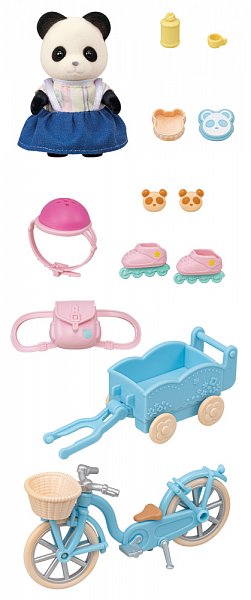 Sada Panda a cyklo-bruslařský set- obsahuje figurku a doplňky pro hraní venku, s pandí dívkou Rosalinou v exkluzivním oblečení, na kole a kolečkových bruslích. Připojte kolo k vozíku, abyste mohli vzít dítě na projížďku nebo přepravit zavazadla. Nasaďte figurce helmu pro bezpečnou jízdu na kole či kolečkových bruslích. Uložte do batůžku láhev, nasaďte figurce na záda a vyražte na výlet. Tato sada obsahuje figurku a doplňky a lze si s ní hrát samostatně. Zkombinujte s Rodinou Pand (prodává se samostatně) pro více zábavy se zbytkem rodiny. Stimuluje nápadité hraní rolí pro děti. Věk: 3+