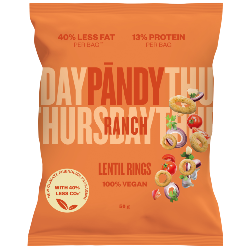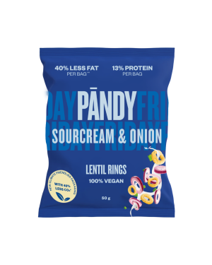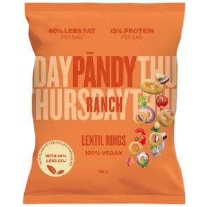 Složení: Pálivé: mouka z červené čočky (42 %), kukuřičná mouka, řepkový olej, rýžová mouka, směs koření (cukr, dextróza, sůl, koření, cibule, rajče, extrakt z koření, kvasnicový extrakt, granule citronové šťávy, česnek, bylinný extrakt), sůl. Jarní cibulka: mouka z červené čočky (42 %), kukuřičná mouka, řepkový olej, rýžová mouka, směs koření (dextróza, cukr, cibulový prášek (1,7 %), sůl, jarní cibulka (0,8 %), kvasnicový extrakt, regulátor kyselosti látky (kyselina citronová, mléčná, mléčnan vápenatý), přírodní aromata, bylina (petržel), cibulový extrakt (0,1 %), sůl. Ranch: mouka z červené čočky (42 %), kukuřičná mouka, řepkový olej, rýžová mouka, směs koření (rýžová mouka, sůl, česnek, cukr, chilli, cibule, přírodní aromata, kvasnicový extrakt, dextróza, citronová šťáva v prášku, extrakt z koření), sůl. Upozornění: Může obsahovat lepek a mléko. Kopr-pažitka: mouka z červené čočky (42 %), kukuřičná mouka, řepkový olej, rýžová mouka, směs koření (rýžová mouka, dextróza, sůl, cukr, cibule, přírodní aroma, bylinky (kopr, pažitka) 0,3 %, citronová šťáva, bylinkový extrakt), sůl. Sýr: mouka z červené čočky (40 %), kukuřičná mouka, řepkový olej, směs koření (maltodextrin, sůl, kvasnicový extrakt, škrobový sirup, cukr, cibule, koření, aroma, regulátor kyselosti (kyselina mléčná), extrakt z koření (paprika)), rýžová mouka, sůl. Smetana-cibulka: mouka z červené čočky (42 %), kukuřičná mouka, řepkový olej, směs koření (maltodextrin, cibule (1,7 %), cukr, sůl, škrobový sirup, koření, kvasnicový extrakt, regulátor kyselosti (kyselina mléčná, kyselina citronová), aromata)) , rýžová mouka, sůl, sušený pórek, zelená cibulka. Lanýže-parmazán: mouka z červené čočky (42 %), kukuřičná mouka, řepkový olej, směs koření (rýže mouka, sůl, česnek a houbový prášek, cukr, kvasnicový extrakt, aroma, cibulový prášek, koření), rýžová mouka, sůl. Může obsahovat stopy lepku a mléka. Upozornění:Skladujte v pokojové teplotě.
