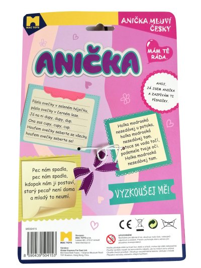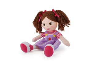 Látková panenka, která umí říkat básničky a zpívat písničky. Velikost 35 cm.