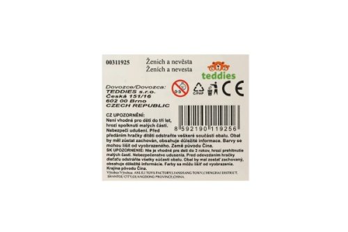 Panenka jako nevěsta a panáček jako ženich. Nevěsta má krásné bílé šaty a ženich oblek. Chceš mít celou rodinku? V tom případě je tento set pro tebe ten pravý. Zažij s těmito figurkami parádní svatební den. Rozměry balení 23 x 32 x 5 cm. Vhodné pro děti od 3 let.