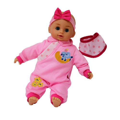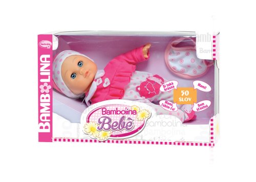Krásné miminko Bambolina Bebe je panenka o velikosti 34 cm, která je ideální pro malé děti, které si chtějí hrát na maminku a pečovat o své miminko. Panenka umí až 50 českých slov, díky čemuž je interaktivní a zábavná – může mluvit, což podporuje kreativní hru a rozvoj řeči a vytvářet si vlastní příběhy. Bambolina Bebe je skvělý společník pro každodenní hru, který přináší radost a lásku do každého okamžiku.