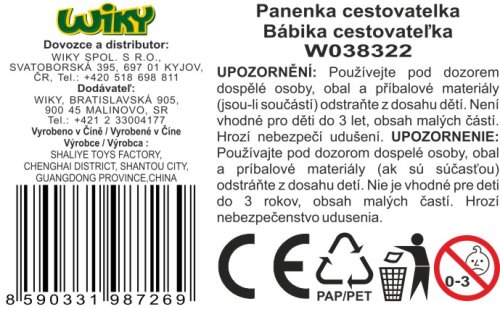 Panenka cestovatelka. Velikost panenky 13cm. obsahuje: panenku, cestovní kufr, 2oblečky, 2hřebeny, kabelku, korunku