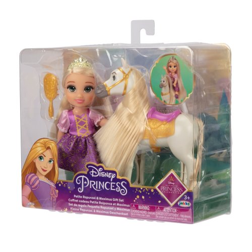 Panenka Disney Princezna Locika a koník Maxmus/ Belle a koník Phillippe – sada obsahuje panenku a jejího oblíbeného koníka, kartáč na česání ocasu a hřívy. Velikost panenky cca 15 cm.