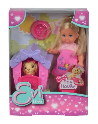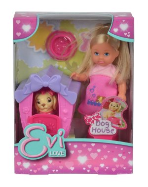 Panenka Evička má psího mazlíčka, který dostal novou boudu. Výška panenky: 12 cm.
