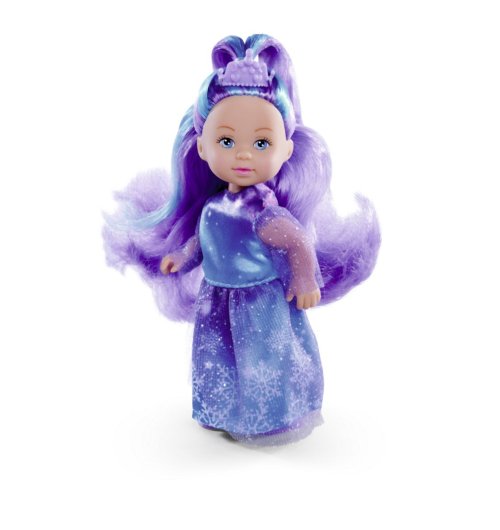 Panenka Evička jako Fantasy princezna v třpytivých šatech s bílým jednorožcem. Výška panenky 12 cm.