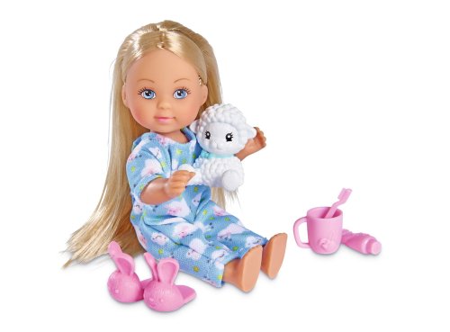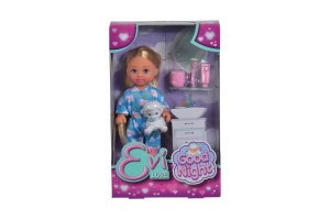 Panenka Evička v roztomilém pyžamku s papučemi, se svou ovečkou, zubním kartáčkem, pastou a hrnečkem. Velikost panenky 12 cm.