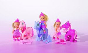 Panenka Evička jako princezna s kouzelným poníkem se třpytivou hřívou. Výška panenky 12 cm.