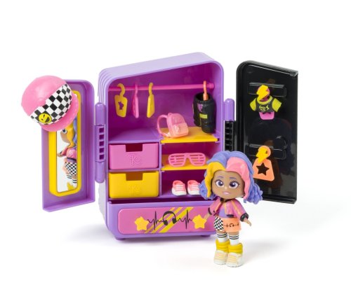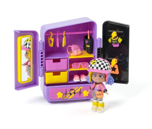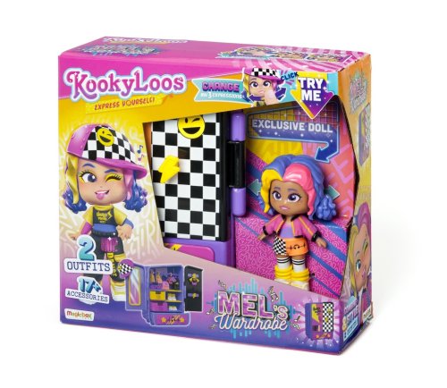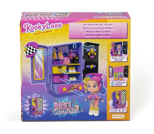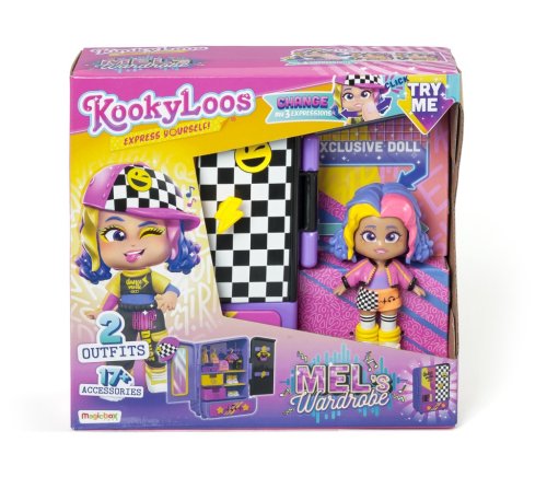 Ideální volba pro všechny dívky, které milují panenky a módu! Jaké atrakce byly připraveny tentokrát? V sérii je až 12 mini panenek ke sbírání. Každá z nich má svůj vlastní jedinečný superstyl a může změnit výraz obličeje. Stačí jedno kliknutí a stane se tak! Kromě toho se tyto roztomilé KookyLoos liší od sebe osobností a zájmy. Mezi nimi je neobvyklá Mel. Mel miluje hip-hop a hudba a tanec jsou její vášní, což se odráží v super hitových outfitech. Vyberte si její oblečení pro taneční soutěže a to, co odpovídá její náladě – určitě se jí bude líbit! Vše záleží na náladě, sami rozhodnete co si penenka KookyLoos oblékne. Když hra skončí můžete vše uložit do praktické šatny. Balení obsahuje 1× exlusivní panenku, 2× outfit, botičky a doplňky, věšáky + zásuvky a 3× samolepku.