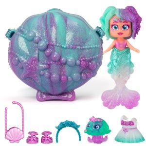 KookyLoos dobývají i moře!Objevte Star, Pearl, Coral a Jewel - malé mořské víly z Kooky Springs. Všechny jsou ve vlastní mušli, které mohou sloužit i jako taštička a můžete si ji vzít kamkoliv budete chtít! Uvnitř najdete spoustu doplňků a exkluzivního mazlíčka. Všechny navíc mají ocas mořské panny, který si můžete sundat, abyste odhalili nožičky a oblékli je do ultra-módního outfitu! „Pearl je sladká a zábavná. Její motto zní: "Čím víc je něco načechranější, tím lépe.“ Ráda tráví čas ve svém mušličkové chatě, podstupuje zkrášlovací procedury s použitím masky z mořských řas a vychutnává si zmrzlinu s příchutí krevet. Sbírá věci ve tvaru medúz.Balení obsahuje – 1× kabelka – mušle, exlusivní panenka, ocas mořské víly, exlusivního mažlíčka, extra outfit, boty a ostatní příslušenství.