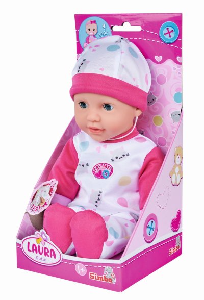 Panenka Laura Cutie s měkkým tělíčkem v roztomilých dupačkách s koťátky. Má pět různých zvuků, které se ozvou po stisknutí jejího bříška. Může se například smát, říkat „Oh Oh““ nebo hrát píseň. Velikost 30 cm.