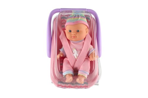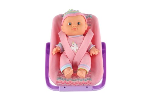 Roztomila panenka s v pevným tělíčkem, které jistě udělá radost každé holčičce a stane se tak její součástí. Panenka je v nosítku neboli autosedačce, takže můžete rovnou vyrazit třeba na výlet! Velikost panenky: 20 cm Vhodné pro děti od 3 let