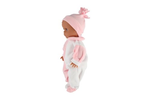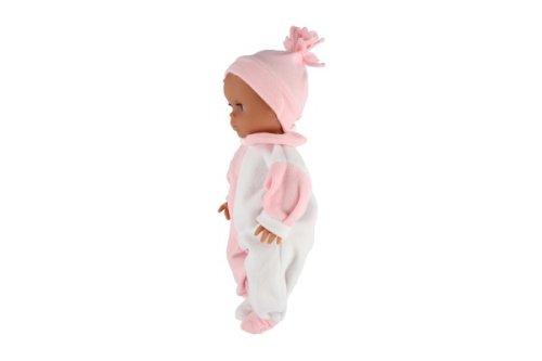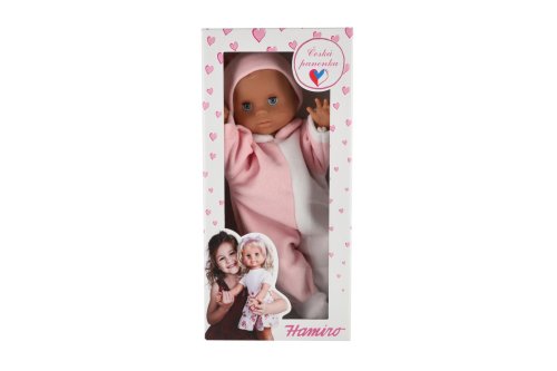 Roztomilé miminko v overalu s čepičkou si oblíbí každá holčička, která si chce hrát na maminku a starat se o své děťátko. Miminko má pevné tělo. Délka 40 cm. V krabici 20x43x13 cm.