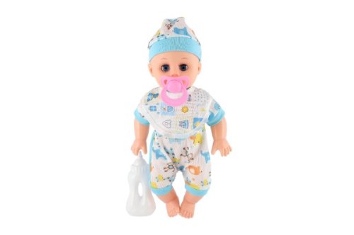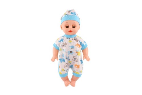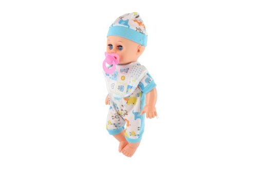 Rozkošné miminko v overalu s čepičkou si oblíbí každá holčička, která si chce hrát na maminku a starat se o své dítě. Tata panenka pije, čůrá a je se zvukem. Miminko má pevné tělo a má doplňky. Na baterie 2x AG13, jsou součástí balení. Velikost panenky: 32 cm Vhodné pro děti od 3 let