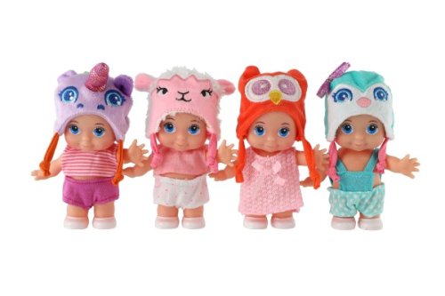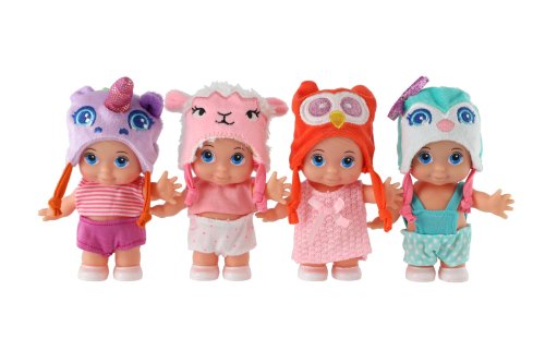 Panenka s pevným tělem a čepicí s motivem zvířátka. Panenka hýbe ručičkama v ramenou. Rozměr panenky: 15 cm Vhodné od 3 let