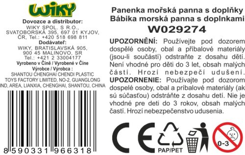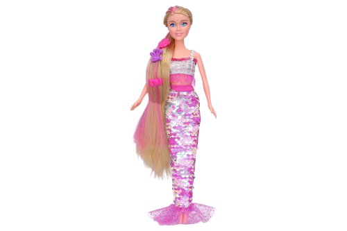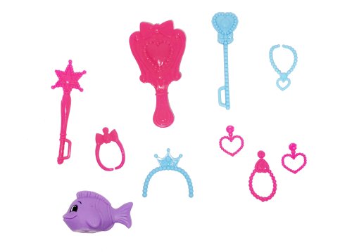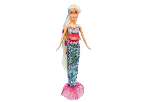 Panenka mořská panna s doplňky. Velikost 29cm. Doplňky: šperky pro panenku, figurka delfína, hřeben na vlasy. Asort: modrá, růžová