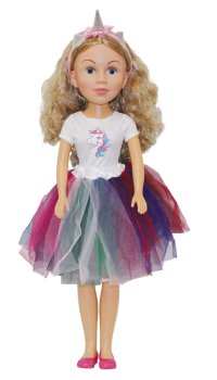 Tato nádherná panenka o velikosti 80 cm okouzlí svým detailním provedením. Má krásné skleněné oči a obléká elegantní svatební šaty s jedinečným designem jednorožce. Perfektní pro sběratele i malé princezny, které milují pohádkovou atmosféru!