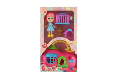 Krásná sada pro malé holčičky. Sada obsahuje panenku s domečkem a k tomu ještě 2 mazlíčky se svojí boudou. Rozměry balení 14 x 24 x 6 cm. Vhodné pro děti od 3 let.