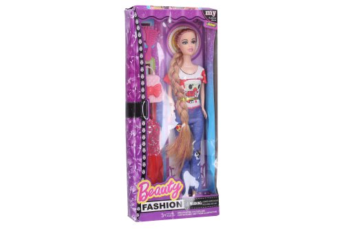 Panenka s kabelkou. velikost panenky 29cm. Obsahuje: panenku, kabelku, hřeben, zrcátko, šaty