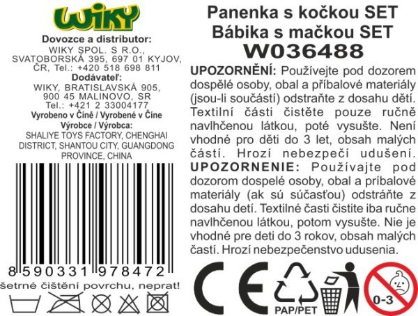 Panenka s kočkou set. Velikost 12,5 cm. Pohyblivé klouby. Obsah balení - panenka, figurka kočky, příslušenství.