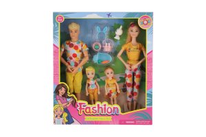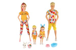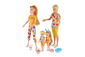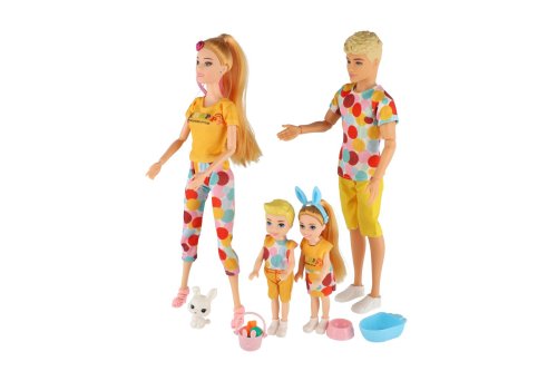 Sada panenek představující kompletní rodinku je ideální pro hraní na domácnost, výlety nebo péči o domácího mazlíčka. Figurky mají pohyblivé části těla a jsou oblečeny do barevně sladěného oblečení. Součástí balení jsou i doplňky jako králíček, košíček a další nezbytnosti pro dětskou hru. Set obsahuje celkem 4 postavy – maminku, tatínka a dvě děti.