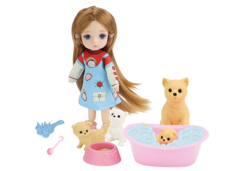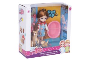 Panenka s pejsky. Velikost 12.531.5cm. Obsahuje: panenku, 3pejsky, příslušenství pro pejsky.