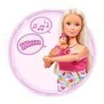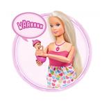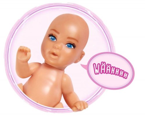 Jakmile přijde děťátko na svět, vykoukne z bříška a dá o sobě vědět křikem. Panenka má ohebné klouby na loktech a zápěstích, aby mohla drobečka chovat a starat se o něj. Po zmáčknutí tlačítka na náhrdelníku se místo srdíčka ozve pláč, usínání při ukolébavce či smích novorozence.