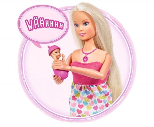 Hraje si ráda vaše dcera, vnučka či neteř s panenkami? Udělejte jí radost panenkou se zvukem Steffi New Born Baby od značky Simba. Steffi je nastávající maminka, které se v bříšku schovává malé miminko. Jakmile váš potomek stiskne tlačítko na náhrdelníku, uslyší tlukot srdce robátka. Teď už stačí jen počkat, až se děťátko panence narodí.