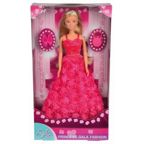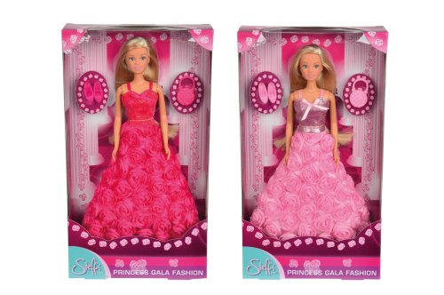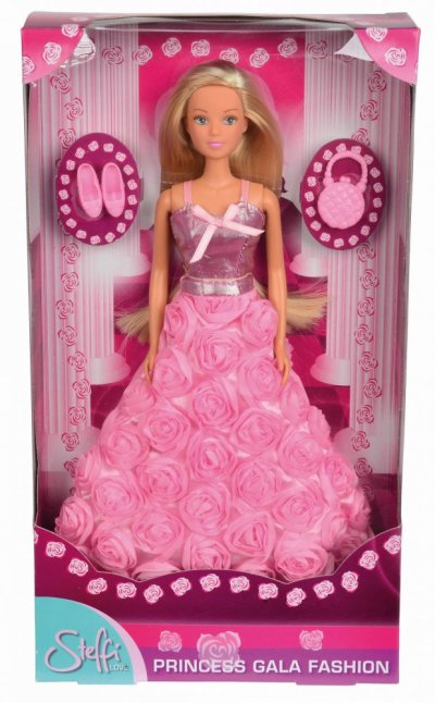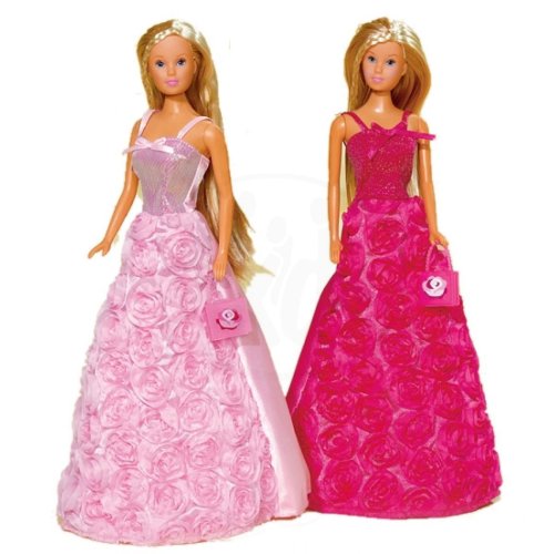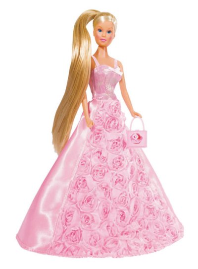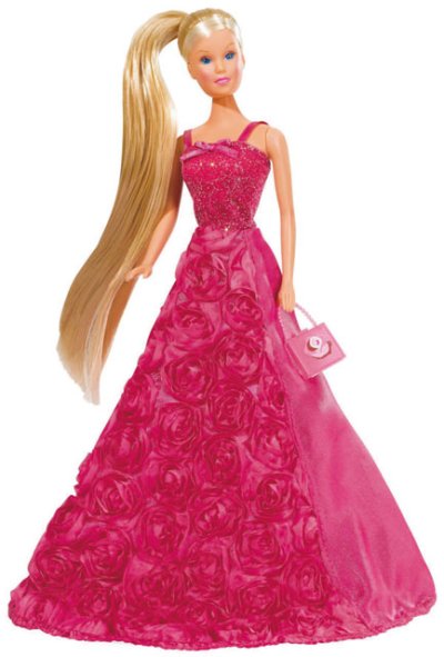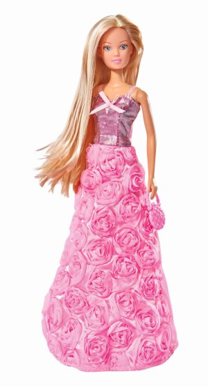 Panenka Steffi v nádherných šatičkách s růžemi. Součástí kabelka i hřeben na vlasy. Výška panenky 29 cm.