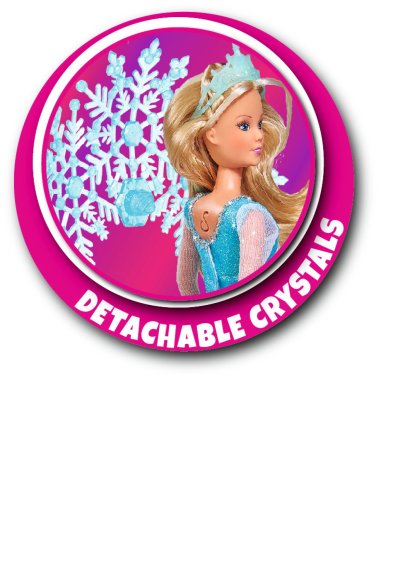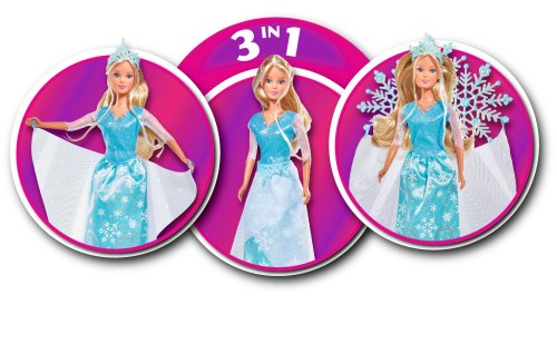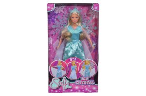Panenka Steffi jako Ledová princezna 3 v 1, s odnímatelnými části šatů. Velikost panenky 29 cm.