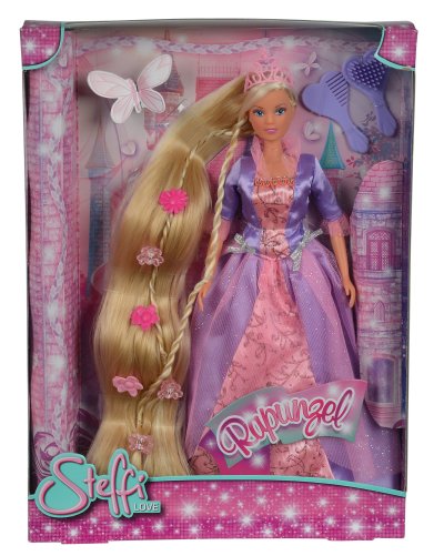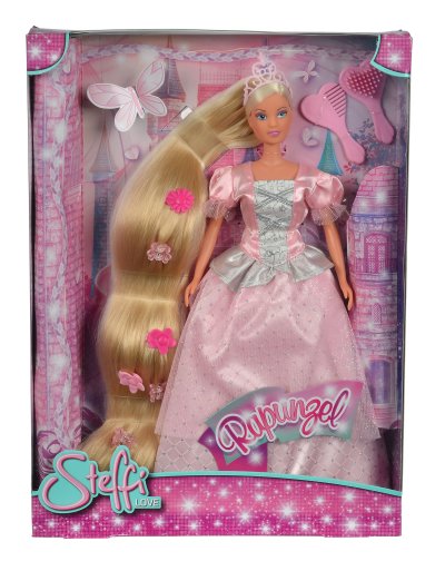 Princezna v krásných společenských šatech, s dlouhými vlasy.
