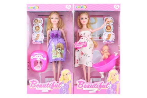 Plastová panenka s těhotenským bříškem o velikosti cca 29 cm. V bříšku panenky se skrývá malé miminko. Balení dále obsahuje dětskou stoličku/vaničku. Rozměr balení cca 31 x 16 x 6 cm. Věk 3+