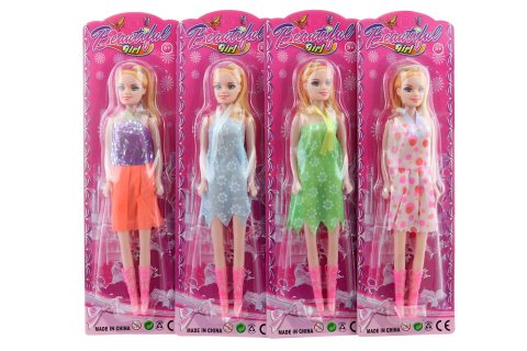Panenka v šatech o velikosti 26 cm. Panenka má pohyblivé ruce a hlavu, nohy jsou pevné. Materiál plast+polyester. Baleno na kartě. Rozměry balení cca 11x35x3 cm. Více druhů, dodáváme dle skladové dostupnosti. Věk 3+