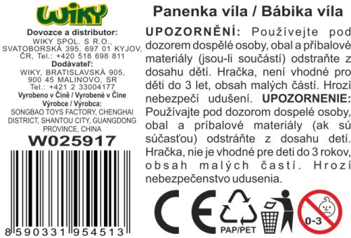 Panenka víla. Velikost 15 cm. 4 varianty - modrá, růžová, žlutá, fialová.