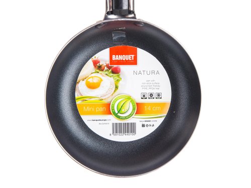 Mini pánev NATURA 14 x 3 cm, nepřilnavý povrch v černé barvě.